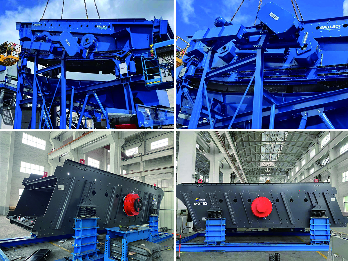 YK型偏心塊式圓振動(dòng)篩是電動(dòng)機(jī)經(jīng)輪胎聯(lián)軸器(撓性片),使激振器里面的偏心塊產(chǎn)生高速旋轉(zhuǎn)。運(yùn)轉(zhuǎn)的偏心塊產(chǎn)生很大的離心力,激發(fā)篩箱產(chǎn)生一定振幅的圓運(yùn)動(dòng),篩上物料在傾斜的篩面上受到篩箱傳給的沖量而產(chǎn)生連續(xù)的拋擲運(yùn)動(dòng),物料與篩面相遇的過(guò)程中使小于篩孔的顆粒透篩,從而實(shí)現(xiàn)分級(jí)。
